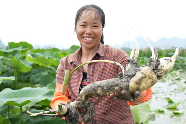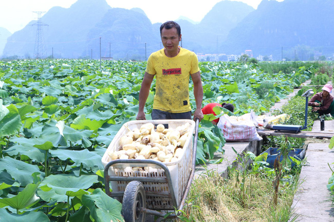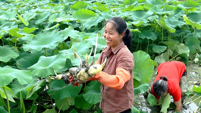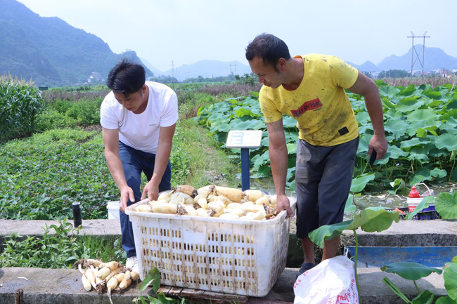 田埂上,收购商覃有度的货车早已等候多时。新鲜采挖的莲藕刚完成分拣清洗,便被迅速装车运走。“百朋莲藕以其出众的品质和脆甜清新的口感,在市场上备受青睐,一直处于供不应求的热销状态。”收购商覃有度对百朋莲藕赞不绝口,“我每日的收购量在200至300斤之间,当前每斤10元的收购价格,既能保证藕农有可观的收益,也让百朋莲藕的优质口碑持续打响,越来越多的消费者认可我们的产品。”