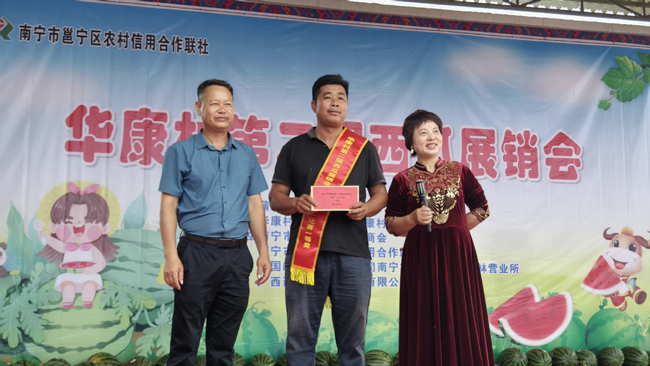 “华康村西瓜种植面积达1200多亩,通过改良品种和科学种植,预计总产量达2000吨左右,按照当前市场行情,预计能为村民带来200余万元的收入,西瓜产业已成为华康村乡村振兴的重要支柱。本次展销会就是要让华康西瓜‘走出去’!要让华康西瓜不仅甜在口感,更甜在村民的钱袋子里。”华康村党总支书记黄祥战介绍。