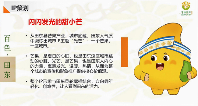 会上,一个令人瞩目的环节是首次发布百色芒果(田东)新IP——“甜小芒”。“甜小芒”以芒果为原型,设计出一个闪闪发光、元气满满、亲和力强的卡通形象。整个IP形象与田东县域轮廓相结合,从田东芒果产业、城市底蕴、人文气质凝练而出,其圆润的外形、鲜艳的色彩以及生动的表情,都旨在吸引消费者的目光,尤其是年轻消费群体。“甜小芒”不仅代表了百色芒果的优质品质,更传递出阳光、健康、快乐的生活理念。它象征着百色芒果产业不断创新、追求卓越的精神风貌。广西田东农林投资集团有限公司董事长鲁晗表示:“‘甜小芒’将作为田东城市IP,通过短视频传播、主题活动及网红打卡等新媒体矩阵推广,深化品牌文化内涵,进一步提升百色芒果的品牌知名度和市场竞争力,助力农文旅融合发展。”