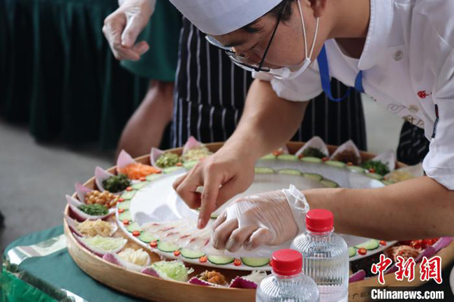 图为参赛选手用鱼生片摆盘。罗晓琴 摄