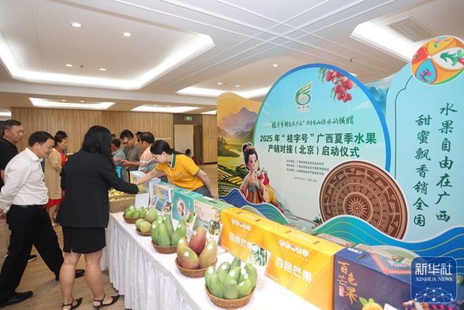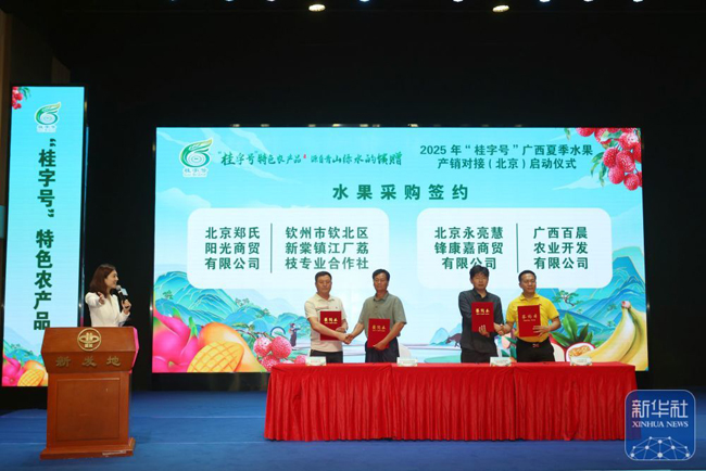 6月14日,2025年“桂字号”广西夏季水果产销对接(北京)启动仪式在北京新发地国际农产品会展中心举行,各类企业现场达成产销合作签约金额7900万元。