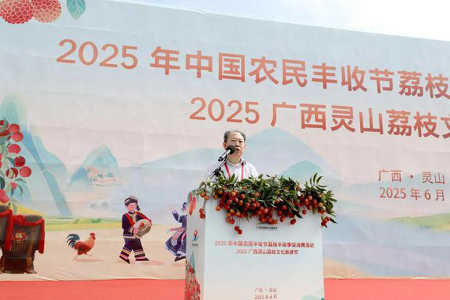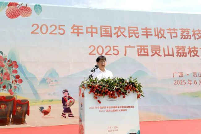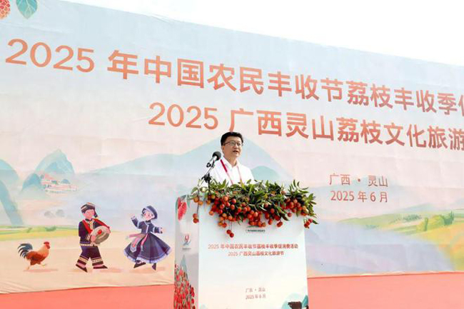 王润雷宣布2025年中国农民丰收节荔枝丰收季促消费活动正式启动。
