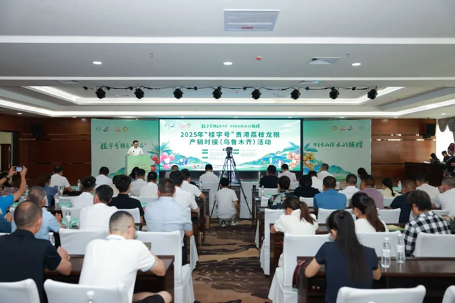 6月30日上午,“‘桂字号’特色农产品 源自青山绿水的馈赠”的2025年“桂字号”贵港荔枝龙眼产销对接(乌鲁木齐)活动在新疆乌鲁木齐成功举办。贵港市委常委、统战部部长周春涌出席活动并致辞。