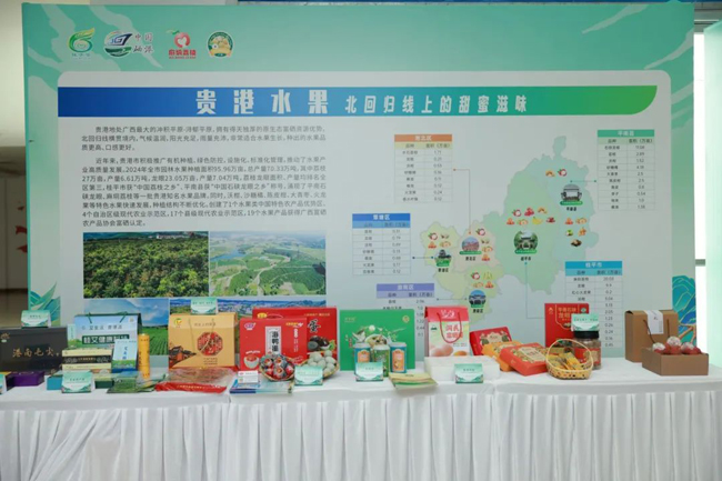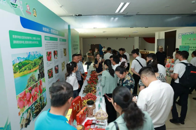 展台上,来自贵港市的特色农产品琳琅满目,让人目不暇接。越州红、荔枝王、仙进奉、冰荔、桂味、岭丰糯、白糖荔、情人荔、翡翠绿等荔枝品种在展台上争奇斗艳;石硖龙眼干、桂圆肉、贵港蔗糖、富硒鸡蛋、海鸭蛋、松花皮蛋、乳鸽汤、港南毛尖、腊味、艾叶等特色农产品,吸引了众多客商前来对接洽谈、体验购物,现场人头攒动、气氛热烈。
