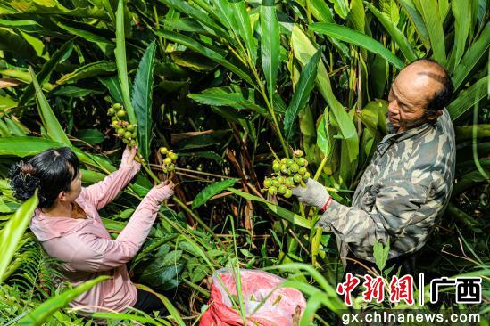 图为种植户在采摘草豆蔻。容县融媒体中心供图
