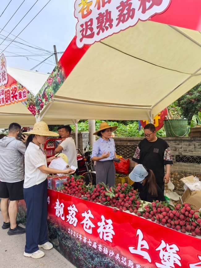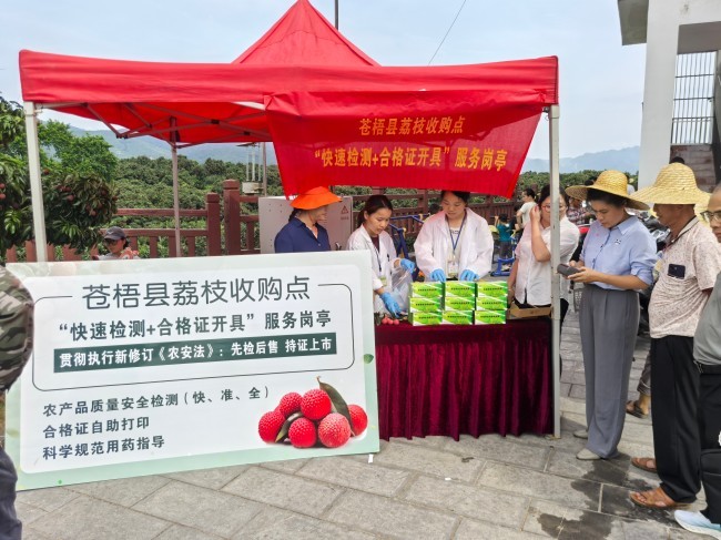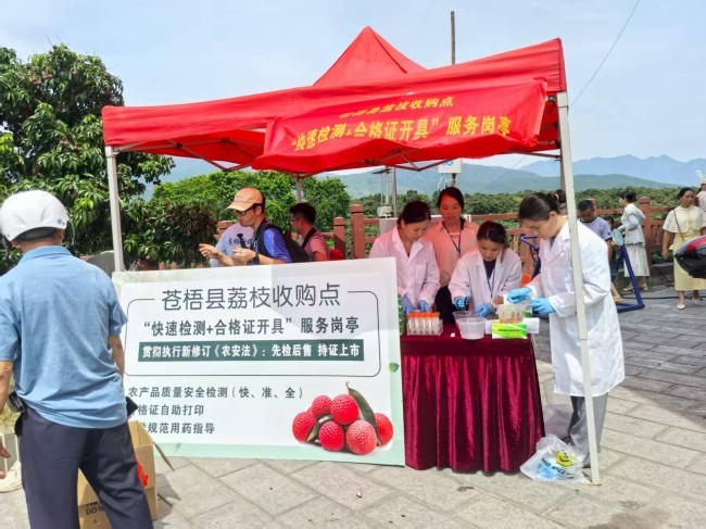 第七届苍梧沙头迟熟荔枝文化宣传周暨2025年苍梧县荔枝烧鸡美食嘉年华活动于日前正式拉开帷幕。为确保节庆期间消费者品尝到安全优质的荔枝,苍梧县农业农村局农产品质量安全监管股、县农产品质量安全检测中心及沙头镇农业服务中心(沙头镇农产品质量安全监管服务站)提前部署,在沙头镇横江村、新建村、塘湾村等核心荔枝产区开展专项农残抽检行动,同时,农技人员还现场指导荔枝种植户和收购商规范开具食用农产品承诺达标合格证,为消费者建立透明的信任桥梁。