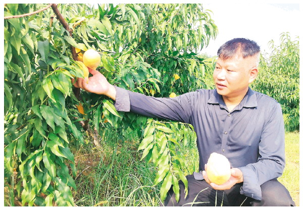 听着游客的称赞,蒋双平脸上难掩喜悦。他告诉记者,2018年,他看中了锦绣黄桃产量大、品质优等特性,在全州率先尝试种植锦绣黄桃。经过精心管护,2021年,锦绣黄桃迎来挂果期。今年,则是他种植的锦绣黄桃丰产期。“目前亩产量能达到2000斤左右。扣除损耗,至少有1500斤到1800斤。”