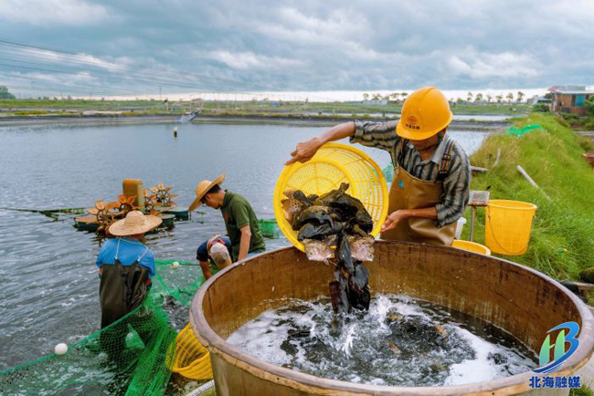 广西水产科学研究院北海基地的十多亩金虎石斑鱼和龙胆珍珠石斑鱼日前迎来丰收季。近日,记者在基地看到,工人们麻利地撒网、收网,分工有序、相互配合,高效完成石斑鱼的捕捞、分拣、打包、运输等程序,努力以最快的速度运送到消费者的餐桌上。