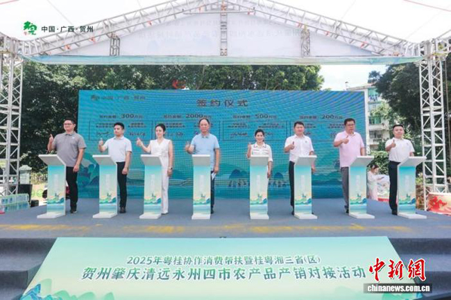 2025年粤桂协作消费帮扶暨桂粤湘三省(区)四市农产品产销对接活动30日在位于广州的广东区域协作消费帮扶产品交易中心举行,共有8家企业现场进行农产品产销合作签约,签约金额4600万元。