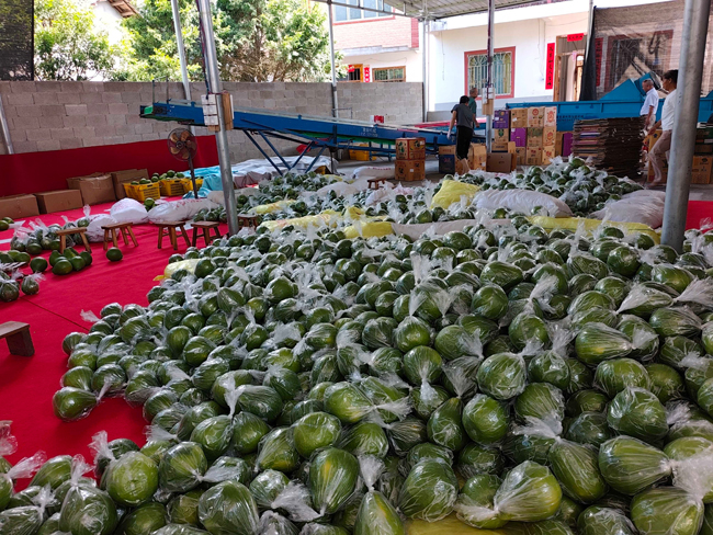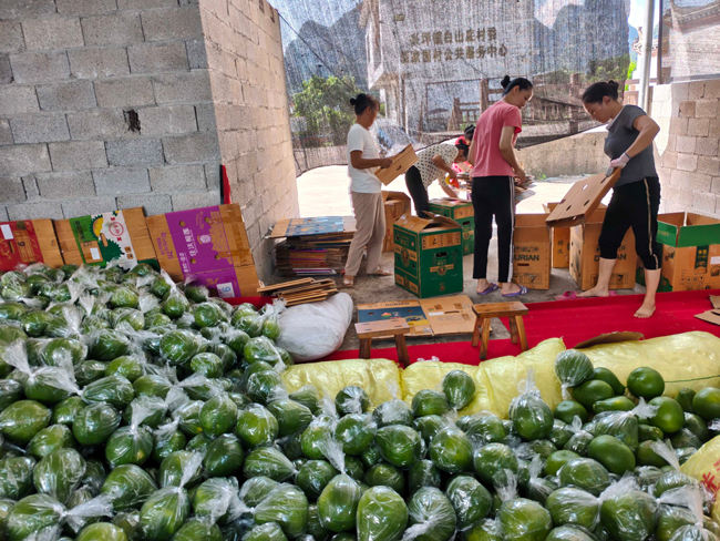“今年与广东收购商签订了10万斤的订单,自8月初开始收购,每天大约4000多斤的发货量,每斤价格在2.4元左右,收购上来的沙田柚在我们这个车间进行采摘后的清洗、包装、装箱装车运往粤港澳等地。”白山底村收购商张松介绍道。