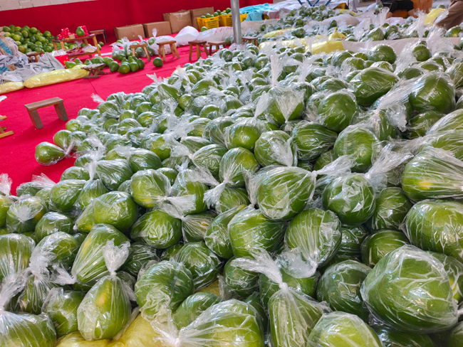 原来,此次提前上市的沙田柚并非秋冬常见的金黄熟果,而是一颗颗重量在1斤至2.5斤的青色果实,小巧玲珑的青色沙田柚因外形浑圆象征团圆,“柚”与“佑”谐音寓意护佑平安,它被视为吉祥之果,成为粤港澳地区喜爱的传统贡品之一,是承载美好愿望的文化载体。阳朔沙田柚因此凭借“贡品水果”抢占了市场先机。