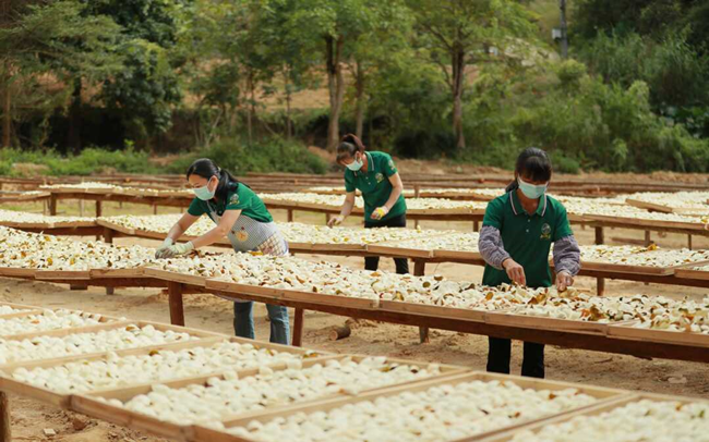 延伸产业链,提升品牌与附加值走进广西浦北县中皮健康产业有限公司,偌大的陈皮生产车间里,上百名工人正有条不紊地进行小青柑清洗、开果、剥皮、晾晒、烘干、分拣等流程作业。“目前,浦北县小青柑已陆续上市,产量是 2024 年的一倍以上,现阶段采收的小青柑,主要用来加工柑普茶、制作饮料等。” 浦北县陈皮协会会长陈能浩介绍。谈到浦北陈皮产业的未来发展,陈会长满怀信心地说:“浦北陈皮产业发展一定是从量变到质变的进程。”