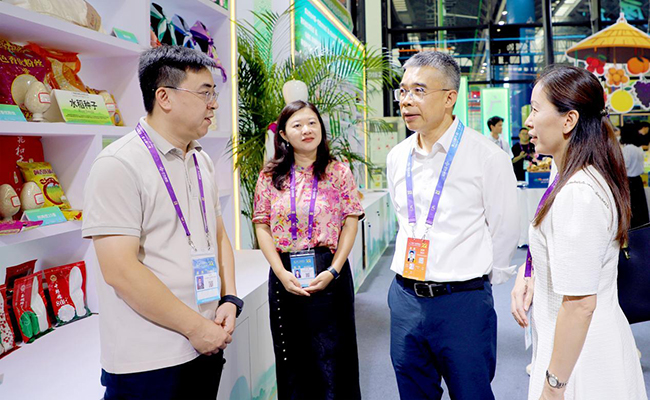 厅党组成员邓妙宏、二级巡视员黄庭军分别到广西国际农业合作展巡馆。