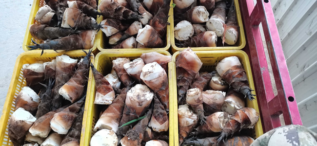 初秋时节,正是甜竹笋的采收旺季。走进李振祥的种植基地,空气中弥漫着清甜的竹香,农户们挎着竹篮穿梭在竹林间,小心翼翼地将刚挖出的甜竹笋放进篮中。不一会儿,新鲜脆嫩的竹笋就堆成了小山。