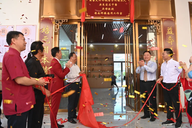 随后,李安洪等领导为欧凯明艺术工作室、吴伟教授岭南鲜药应用工作室揭牌。