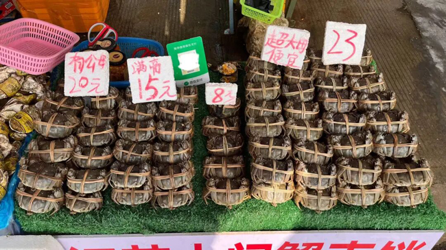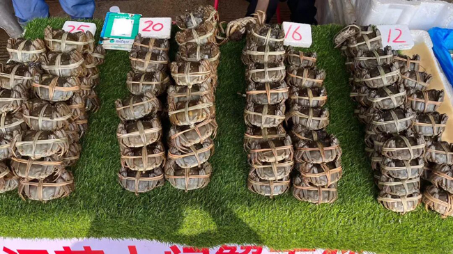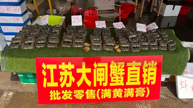 据市场商户介绍,节后大闸蟹价格较节前有下调,不同规格产品价格区间清晰,可满足多样化消费需求。前进市场商户黄先生:“节后跌价跌了好多,节前2两规格23-25元/只这样子,贵的话卖到35元/只,现在大概15元/只。”市场商户覃女士也表示,2.5两规格的江苏大闸蟹,节前每只售价 30元/只,节后降至23元/只。