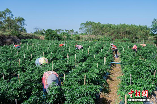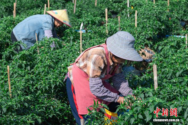 图为村民在采收辣椒。兴业县融媒体中心 供图