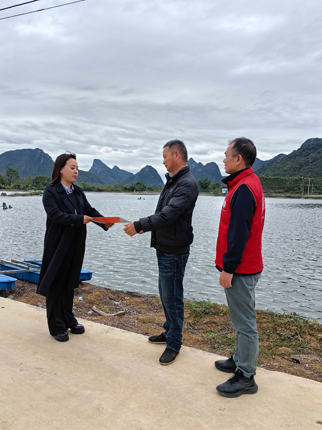 近日,在临桂区政府、财政局、农业农村局、金融监管局联合指导下,平安产险临桂支公司携手辖区水产技术人员、科技特派员,针对当地优势特色农产品创新推出淡水鱼养殖保险服务并完成首单落地。多方力量协同发力,既为淡水鱼养殖产业筑牢风险“防护网”,又以技术赋能夯实生产基础,为防灾减灾,保障水产品稳定供给提供政策支持,助力乡村振兴提质增效。