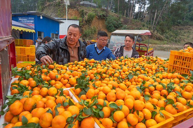 活动启动后,发车仪式现场一派繁忙,果农忙着运送、售卖沙糖桔,外地客商专注于打包、装车,喜庆的鞭炮声与轰鸣的彩炮声交织。满载黄灿灿沙糖桔的车辆缓缓驶出广西西林泰源果业开发有限公司,奔赴北京、沈阳、新疆乌鲁木齐等全国多地。据广西西林泰源果业开发有限公司董事长刘建军介绍,开市当日共发出12车沙糖桔,总计240吨。