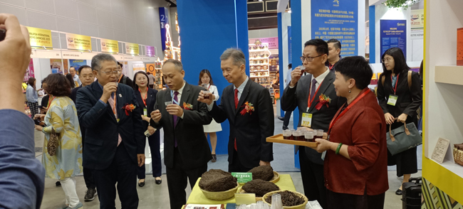 展会期间,“桂字号”农产品展位吸引了广泛关注。马来西亚通讯部副部长张念群、中国驻马来西亚大使馆经商处公参孙淑强、中国—东盟博览会秘书处副秘书长梁艺光等多位政府官员、商协会领袖及企业家亲临现场参观指导。丰富的产品展示与生动的茶艺表演,吸引了大量当地民众与专业客商驻足品鉴、深入洽谈,现场交流气氛热烈,充分展现了“桂品”的魅力与市场潜力。