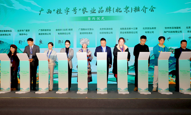 活动现场成果丰硕,广西农业企业与北京采购商达成合作意向并签署购销协议,签约金额约5600万元,有效搭建“桂品”入京产销桥梁,为广西优质农产品进入北方主流消费市场、促进产业提质增效。此外,推介会后新发地10余家采购商专门到广西展区与企业采购洽谈,现场洽谈氛围热烈。