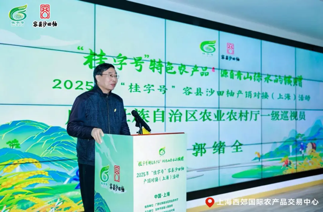 广西壮族自治区农业农村厅一级巡视员郭绪全出席活动并致辞,他表示广西凭借全球最大的园林水果产区优势,展现了其农业的丰富资源和市场潜力。同时强调了广西与上海在农产品销售与合作上的紧密联系,期待双方进一步深化农业协作,在优势互补中不断厚植合作根基。