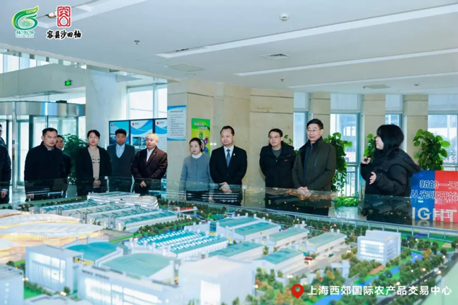 为深化本次产销对接的务实成效,活动前,广西壮族自治区及容县领导带领嘉宾代表团在上海西郊国际农产品交易中心进行了实地走访与深度调研,精准对接一线市场脉搏,通过现场考察华东地区核心枢纽市场的运营模式、消费偏好与准入标准,为容县沙田柚“优品入沪”探明路径、打通关键节点。