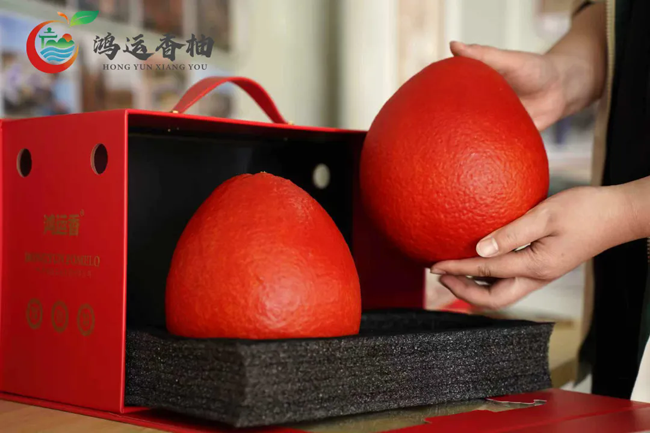 礼盒装鸿运香柚,向人们传递着“红红火火”“鸿运当头”的美好寓意。