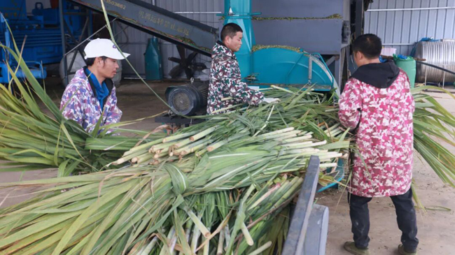 该收购点每天能回收甘蔗叶约40吨,加工青储饲料35吨左右。截至目前,该合作社已回收加工甘蔗叶青储饲料近600吨,带动周边200余户村民增收,预计本榨季可收购约7000吨。
