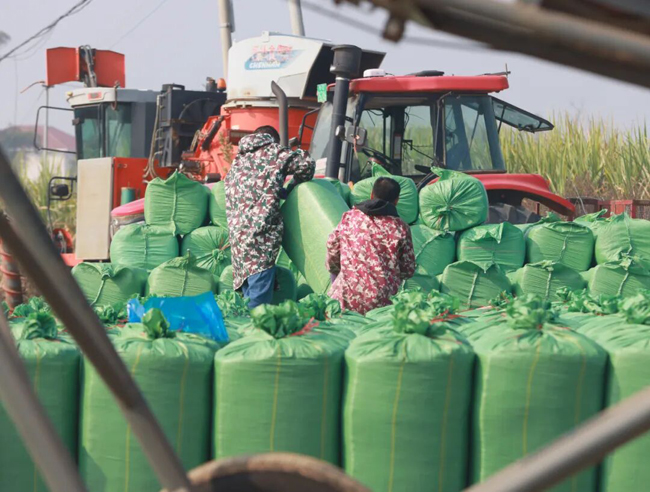 柳城县作为“国家糖料蔗生产基地县”、广西“双高”基地建设重点县,2025年甘蔗种植面积达60.02万亩,产生的甘蔗叶数量十分庞大。近年来,柳城县大力培育和引进秸秆利用的企业、合作社30多家,因地制宜推进秸秆饲料化、燃料化、肥料化、基料化、原料化利用,让秸秆“变废为宝”,实现生态效益、经济效益双丰收。