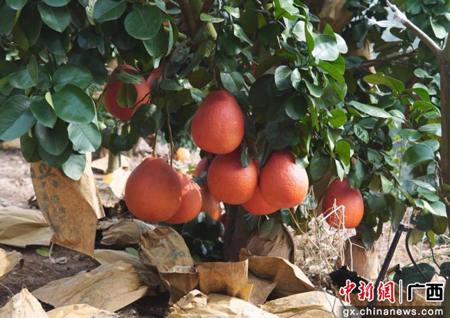 鲜红光亮的鸿运香柚挂满枝头。覃锋 摄