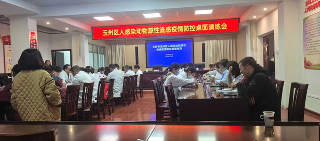为防范动物源性流感病毒跨种传播风险,2026年1月8日,玉州区农业农村局联合区卫生健康局等部门,共同开展人感染动物源性流感疫情防控桌面演练,通过模拟实战推演,提升人兽共患病联防联控能力。