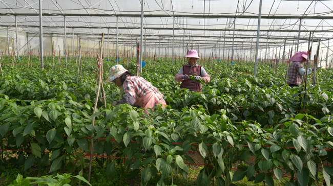 当地群众正在巴马寿源田园综合体采摘螺丝椒