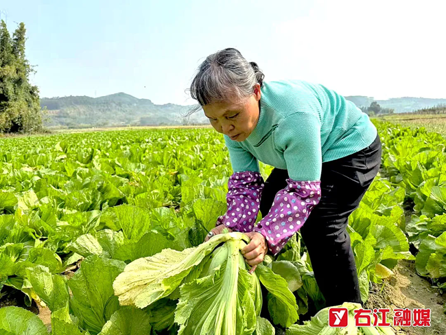 村民在采收腌制酸菜原材料。