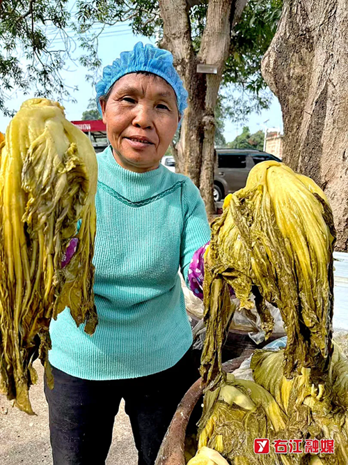 村民展示酸菜成品。