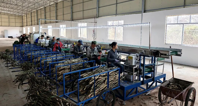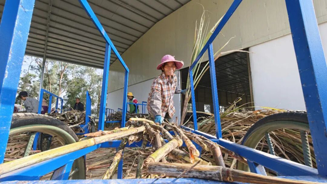 目前正值甘蔗种植的黄金时期,1月27日,笔者在位于上思县思阳镇易和村的广西秋睿农业科技有限公司种茎加工厂内看到一片繁忙景象,二十余名员工各司其职,娴熟完成蔗种切割、消毒、包装等标准化工序。这批精挑细选的脱毒蔗种,作为蔗糖产业发展的“产业芯片”,即将奔赴上思县各蔗区,为新一年糖料蔗高产高糖播下希望的种子。