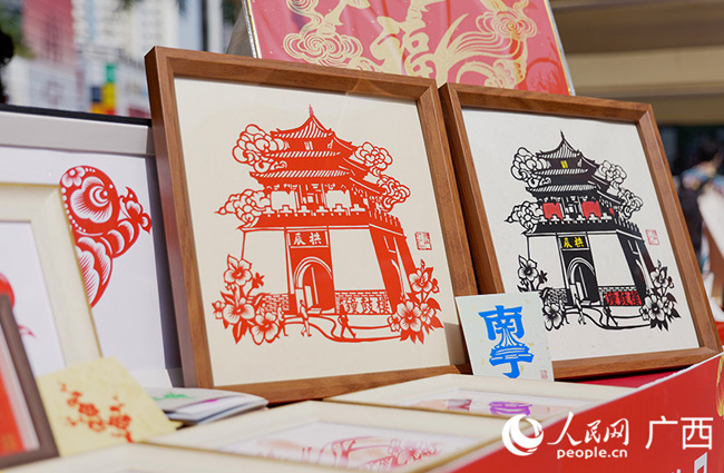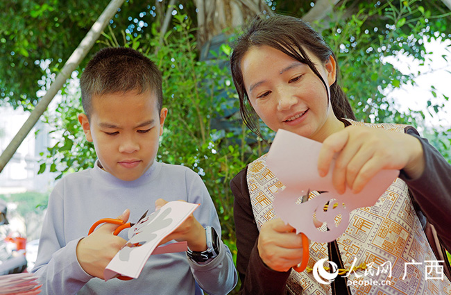 非遗文创区主打壮锦文创系列产品,手工织造的壮锦蕴含着壮族人民对美好生活的期许。剪纸摊位前,南宁市民黄穗带孩子亲自上手体验。“这些剪纸的图案都是来源我们的生活,体验剪纸不仅是让传统文化传承到下一代,也能够让小朋友们在创作的过程中大胆创新。”指尖翻飞,鲜活的奔马纹样、喜庆的新春图案转瞬成型。