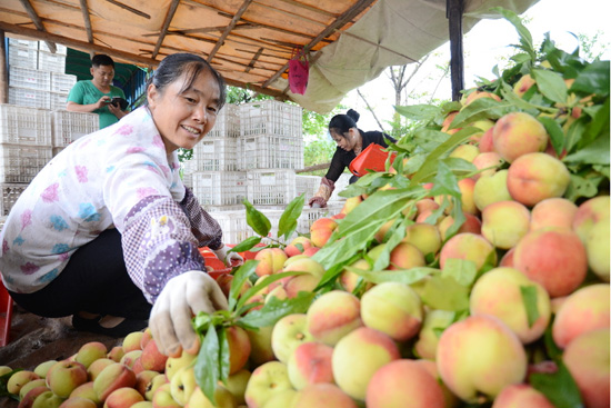恭城县通过产业结构调整,按照“一村一品”模式,促农增收。据该县农业部门介绍,今年油桃、黄桃、春雪和春美等品种桃树种植面积达63000多亩,产量在54000吨左右,目前市场价格在每公斤4—7元不等,由于今年气候适宜,果大肉甜,深受外地客商青睐,产品主要销往江西、湖南和广东等地。据了解,由于桃树品种不同,摘果销售时间将持续到6月上旬。