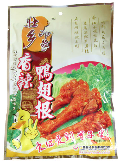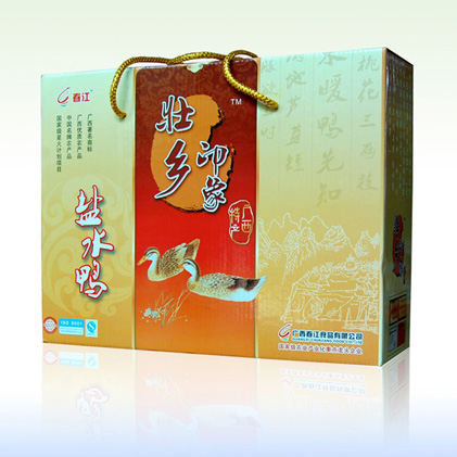 春江鸭【壮乡印象】系列,绿色休闲食品,广西特产之一,是春江公司重点打造的食品精品工程,精选数十种中药材秘制粤式卤制液,以传统卤制工艺融入现代食品营养学的滋补理念,采用现代工艺手段精制而成。产品营养丰富,清香醇厚,口感细腻,回味悠长。壮乡印象香鸭有肉鸭“滋阴养胃、清肺补血、利水消肿”的食补作用富含多种滋补营养成分,老少皆宜,深受广大市民和消费者的喜爱。春江鸭【壮乡印象】绿色休闲系列,是您馈赠好友、居家旅游的首选珍品。
