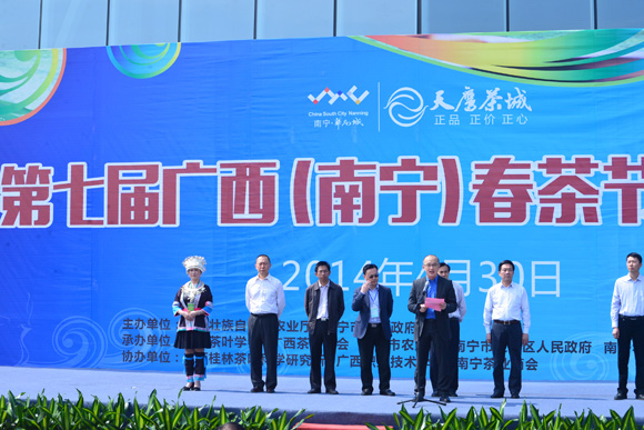 本网讯 4月30日,以“展广西春茶独特魅力,促桂茗精品流芳神州”为主题的第七届广西春茶节在南宁华南城开幕。本届春茶节由广西农业厅、南宁市政府主办,广西茶叶学会、广西茶叶协会、南宁市农业局、南宁市江南区政府、南宁华南城、天鹰茶城承办。