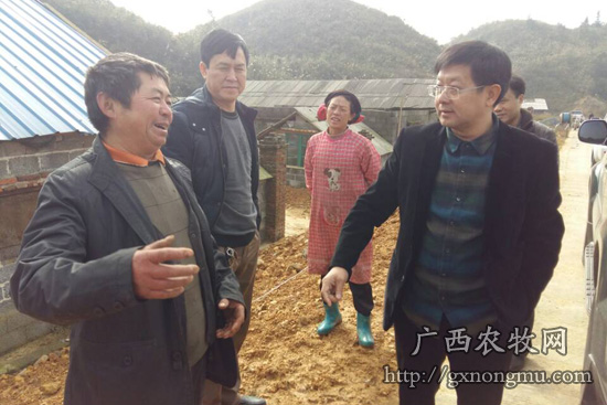 培训结束后,蒋和生局长不惧寒风冷雨,深入到桂北山区各牛栏猪场调研,为养殖户现场指导。