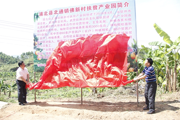 主题活动启动仪式上,钦州市农机局欧毓模副调研员宣读“精准扶贫先锋行”主题活动方案;武警钦州边防支队范虎林队长作表态发言;钦州市农机局、市国资委、武警边防支队等三个单位领导将捐赠款交到村干部代表手中;最后,全体参会人员到种植现场开展种植砂糖桔树苗仪式。根据活动方案,对贫困村的精准扶贫工作主要是从扶智教育培训、基础设施帮扶、产业帮扶、农机帮扶、警民共建等5个方面开展,全力推进各项扶贫措施到位,确保贫困村早日实现脱贫目标。