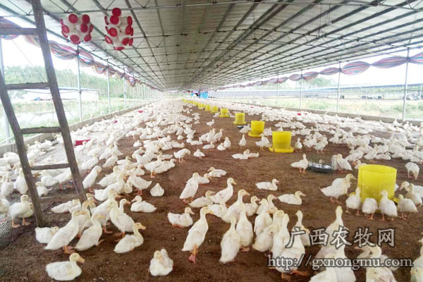 “目前,与我们公司合作的养殖户已达到800多户,年出栏肉鸭800多万羽,养殖户每年平均增收5万多元,养户肉鸭养殖年平均利润3元/羽以上”。在桂林临桂县,广西水产畜牧行业重点龙头企业-----广西科源家禽有珍有限公司通过六个统一即“统一提供鸭苗、统一提供饲料、统一提供防治药物、统一技术服务、统一提供保价回收”的管理模式进行规模推广,提升了养鸭业的科技含量和生产效益,辐射带动了全州、恭城、永福、灵川周边区域扩散发展规模化肉鸭旱养技术。同时“科源肉鸭旱养模式”以占地面积少、不污染水源,饲养周期短、见效快、料肉比低,经济效益好、成活率高等优势积极推动了广西家禽产业化的发展。公司也发展为广西樱桃谷肉鸭养殖规模最大公司,产品覆盖整个广西及湖南、贵州、和广东部分地区,加快了县域农业经济发展的步伐。
