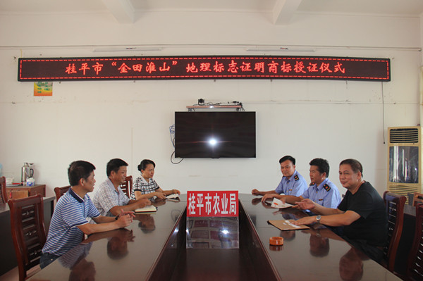8月1日,桂平市举行“金田淮山”地理标志证明商标授证仪式,桂平市工商局有关负责人代表国家工商总局颁发了“金田淮山”地理标志证明商标注册证。这标志着桂平市名特优农产品“金田淮山”正式获得国家地理标志证明商标保护,淮山品牌建设进入新的阶段。