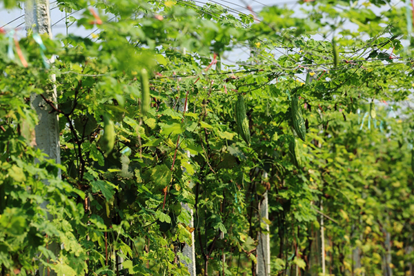进入8月份,柳江县成团镇的葡萄基地陆续有丝瓜、豆角、苦瓜采收上市,卖价比6~7月份还高一点,农民得到实实在在的利益。这是农民在春葡萄收获后,不搞秋季葡萄生产,而是在葡萄地里套种瓜豆得到的果实。预计,丝瓜可以采收到11月份。