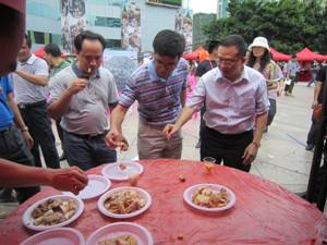 为了面向广大市民宣传普及“吃鸡健康,吃健康鸡”、“无鸡不成宴、产妇必吃鸡”的玉林民俗文化,促进消费,激活市场,力推行业稳健发展。6月9日上午,由自治区水产畜牧兽医局支持,玉林市水产畜牧兽医局、玉林市科学技术协会主办,玉林市水产畜牧业协会、玉林养禽企业承办,玉林市烹饪协会协办的2013玉林“百鸡宴”活动在玉林城区青年广场举行。自治区水产畜牧兽医局领导、玉林市政府领导、玉林市水产畜牧兽医局领导、玉林市科协领导、玉林市水产畜牧业协会领导、广西大学教授、玉林市烹饪协会会长、养殖企业老总及负责人代表出席参加了活动。自治区水产畜牧兽医局畜牧处闭强处长,玉林市水产畜牧兽医局封寅芳局长作了活动致辞,广西大学韦平教授现场宣讲吃鸡健康、吃健康鸡文化,玉林市邓长球副市长宣布“百鸡宴”开始。市民现场品尝玉林优质鸡水蒸鸡、炸鸡、白切鸡、卤水鸡、玉林土洋鸭汤、阉母鸡鸡汤、鸡蛋、有机青菜等安全食品。活动场面隆重、热烈、简朴。南国早报、南方科技报、广西电视台、广西日报社、广西广播电台、玉林日报、玉林晚报、玉林电视台、广西新闻网、玉林广播电视报、玉林红豆网、玉林旅游网等新闻媒体进行了跟踪报道。