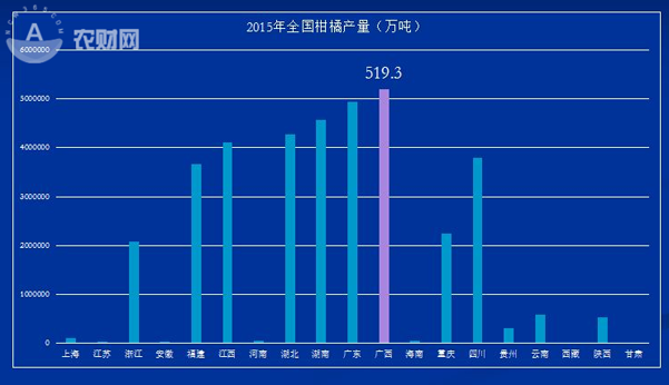 2015年全国各地柑橘面积分布