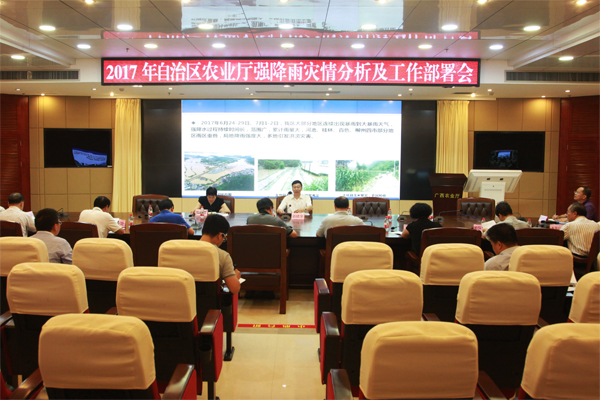 2017年7月3日上午,自治区农业厅组织召开强降雨灾情分析及抗灾救灾工作部署会,自治区防汛抗旱领导成员、自治区农业厅重大自然灾害突发事件应急行动领导小组副指挥长、副厅长郭绪全主持会议并作工作部署。厅办公室、计财处、市场信息处、粮油处、经作处、科教处、广西农业信息中心、广西农技推广总站、广西植保总站、广西土肥站、广西水果总站、广西蚕业总站、广西种子局以及自治区农机局相关处站参加会商。