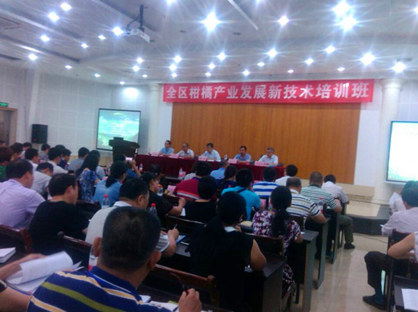 培训班邀请了华中农业大学、西南大学、湖南农业大学、中国农业科学院柑桔研究所、广西农业科学院等单位的国内柑橘知名教授专家授课。教授专家们分别从柑橘新品种选育、优质高效栽培技术、无病毒苗木繁育技术、黄龙病综合防控技术、主要害虫防控技术、产业经营组织与品牌建设、柑橘基因组研究现状及进展等新技术做了精彩的报告。