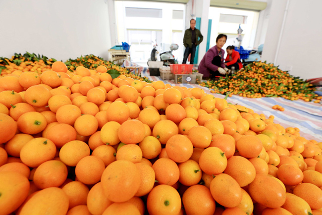 11月8日,在广西融安县中国供销·桂北农产品电商园,工人在将金桔装箱准备外销。当日,广西柳州市融安县金桔全面上市销售,到处是一片丰收销售的景象。为确保金桔品质,该县大力推广金桔“三避技术”(避雨、避寒、避晒),提高金桔的品质、调整熟期结构、拓展市场份额,帮助果农增产增收。